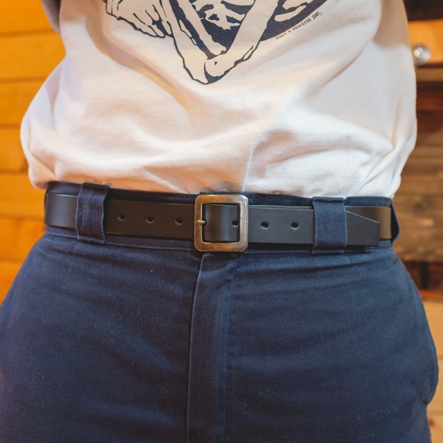 Hermann Oak社のレザーを使用した レザーベルトになります。 デニムやワークパンツ、 様々なパンツに合います。 【サイズ】 全長=約106cm(バックル含む) 幅=約3cm 対応幅はパンツサイズ 30インチ〜38インチぐらいまでと なっております。(あくまで目安になります)